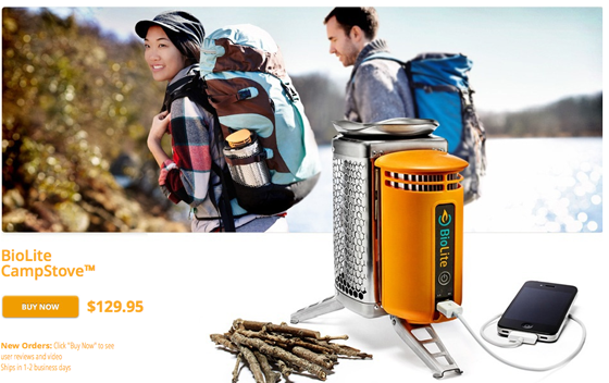 BioLite és una empresa que ha creat un innovador sistema per carregar aparells elèctrics a partir del foc. Un fogonet de campanya que introduint llenya permet escalfar i cuinar, alhora que uns sistema transforma aquesta calor en energia elèctrica per carregar un telèfon mòbil, una llanterna, etc.