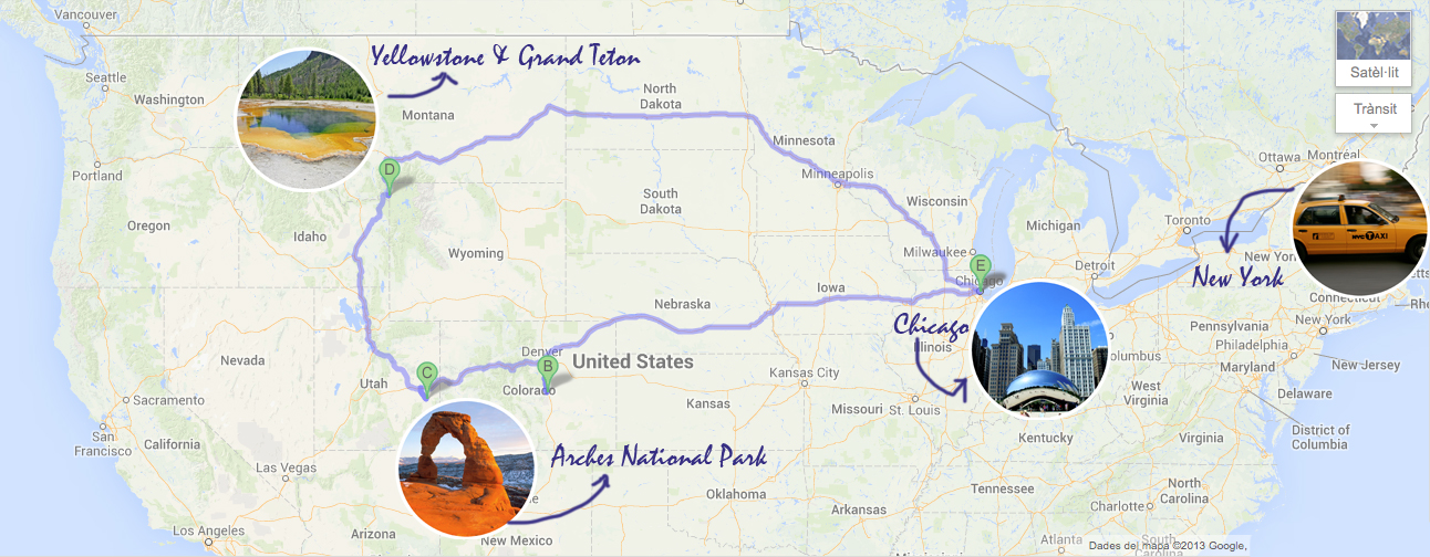 Tot a punt per embarcar-nos en una nova aventura que començarí  ben aviat i ens portarí  a travessar el centre d’Estats Units amb cotxe i de cí mping, sortint des de Chicago i visitant Colorado, parcs nacionals de Utah, i el Grand Teton i Yellowstone a Wyoming, per tornar travessant Dakota, Minessota i Wisconsin fins a Chicago. I d’allí  uns dies de visita a Nova York.