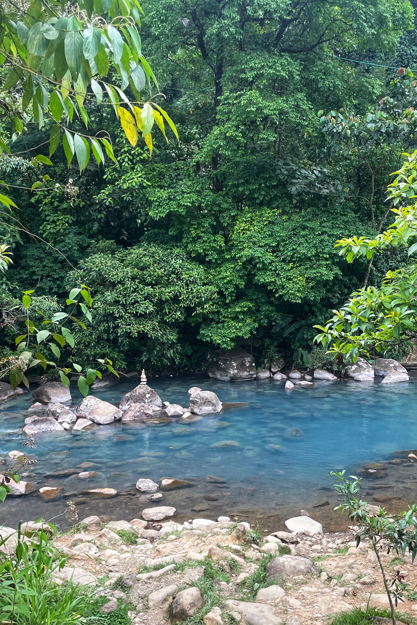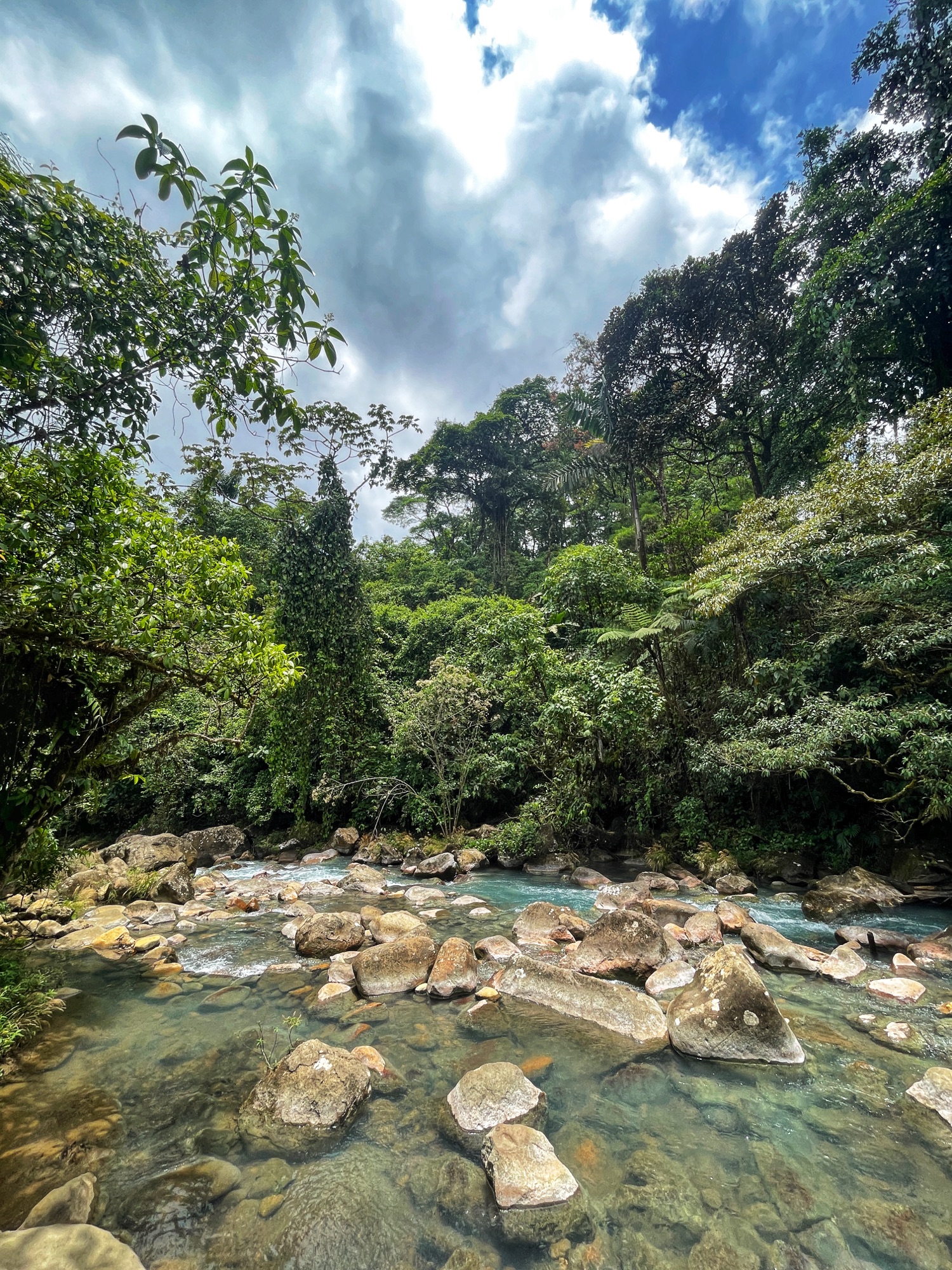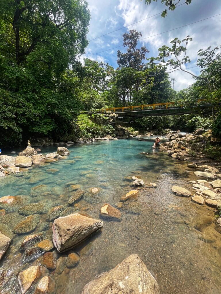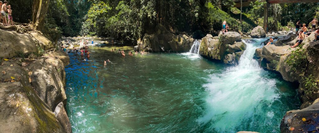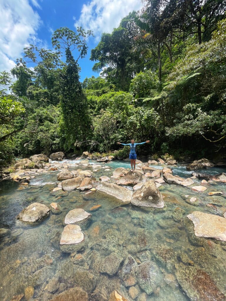 I després ens hem animat a conduir 1:30 hores fins al río Celeste, a l’entrada del parc nacional del volcà Tenorio, on hi ha la free pool, un tros del riu celeste on és permès el bany. Un cop dins del parc, que cal pagar entrada, ja no s’hi pot banyar.