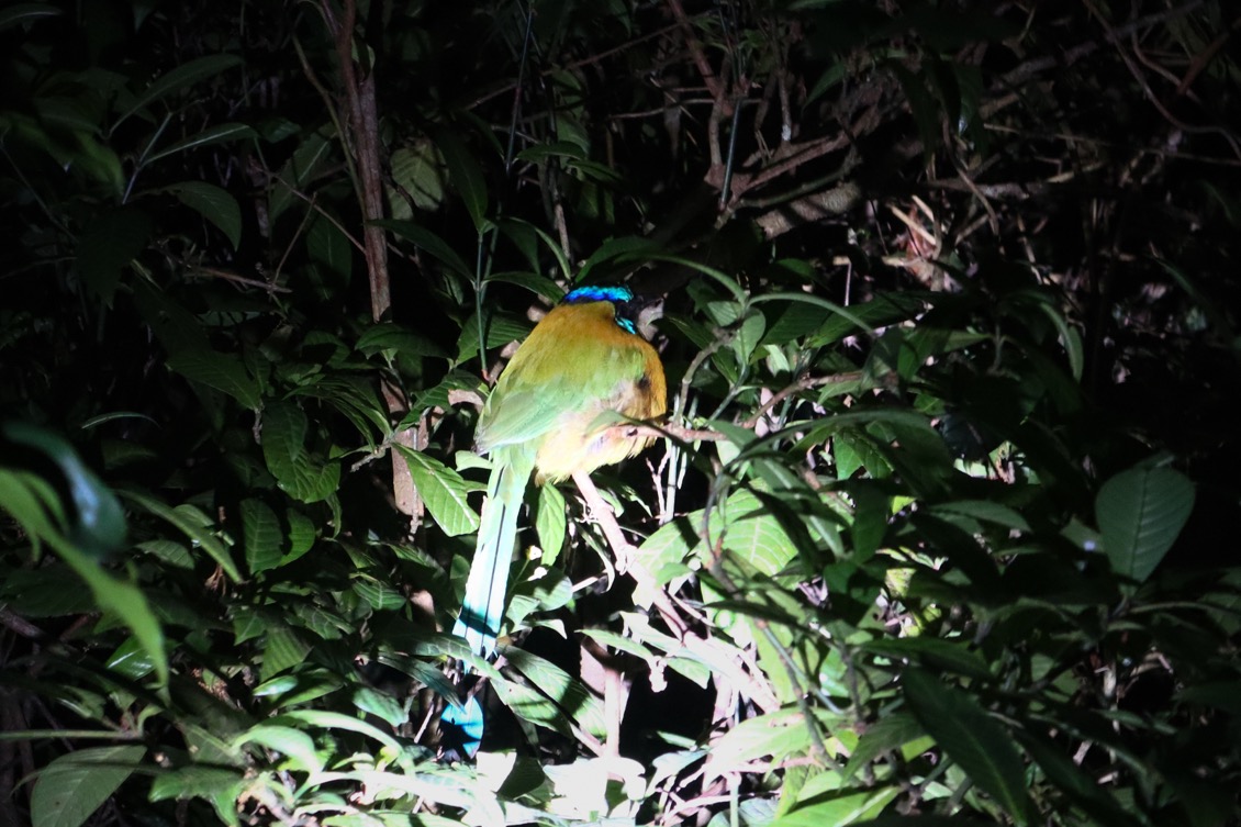 Però també vam poder veure ocells, com el Tucan de pic arc iris, un pangolí de 9 ratlles (armadillo), tres zarigueyas, i l’ós peresós de 2 dits rascant-se dalt d’un arbre. Al ser tant fosc, amb la llenterna els podíem veure però pràcticament impossible de fotografiar.