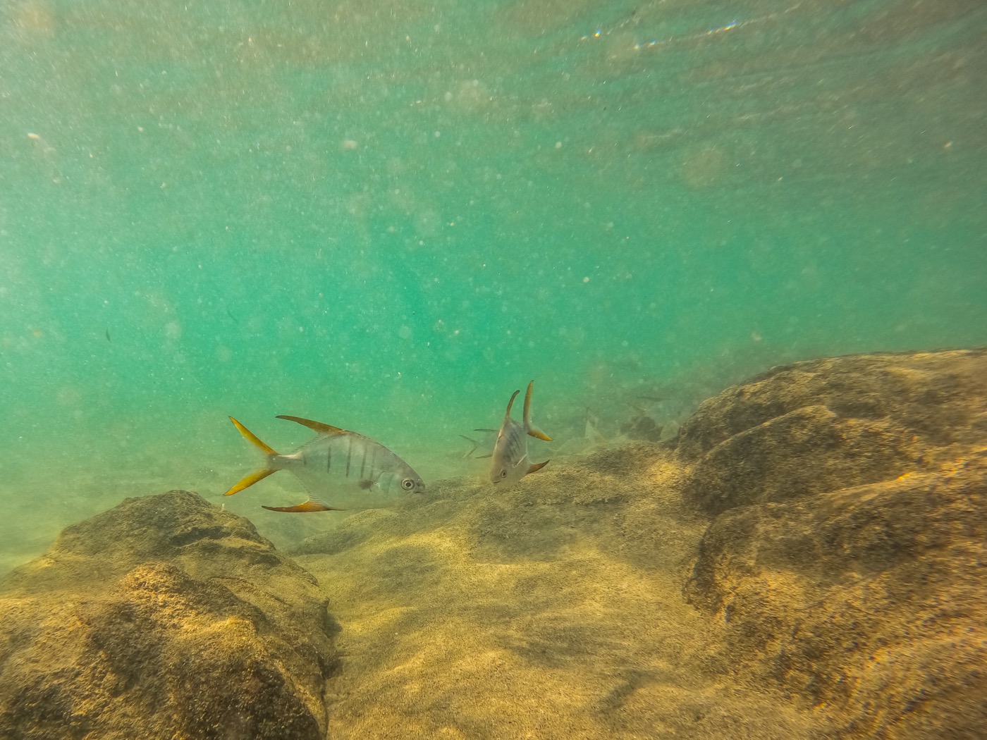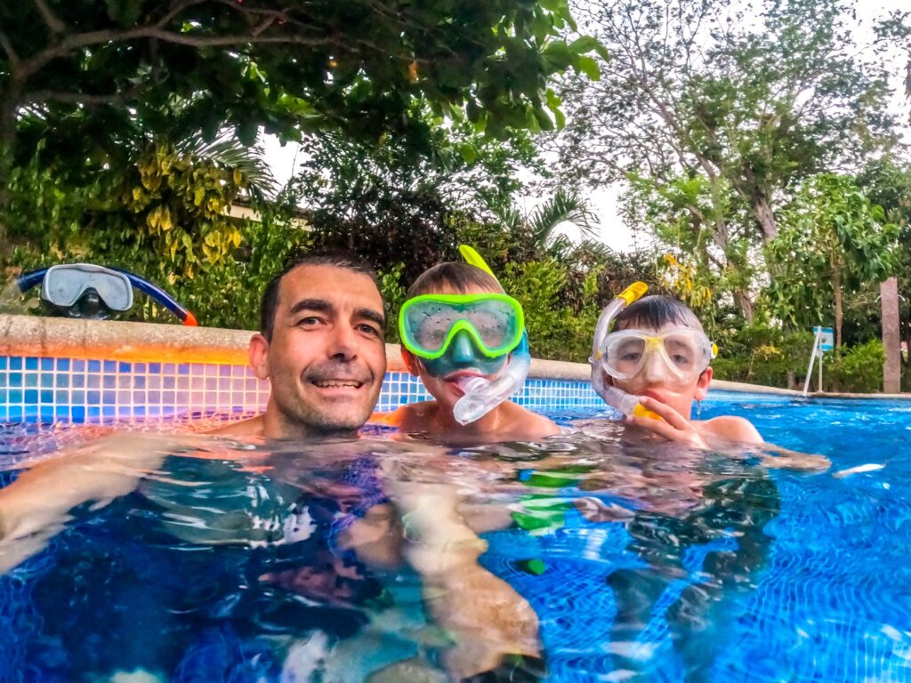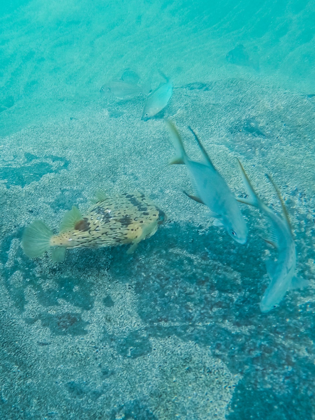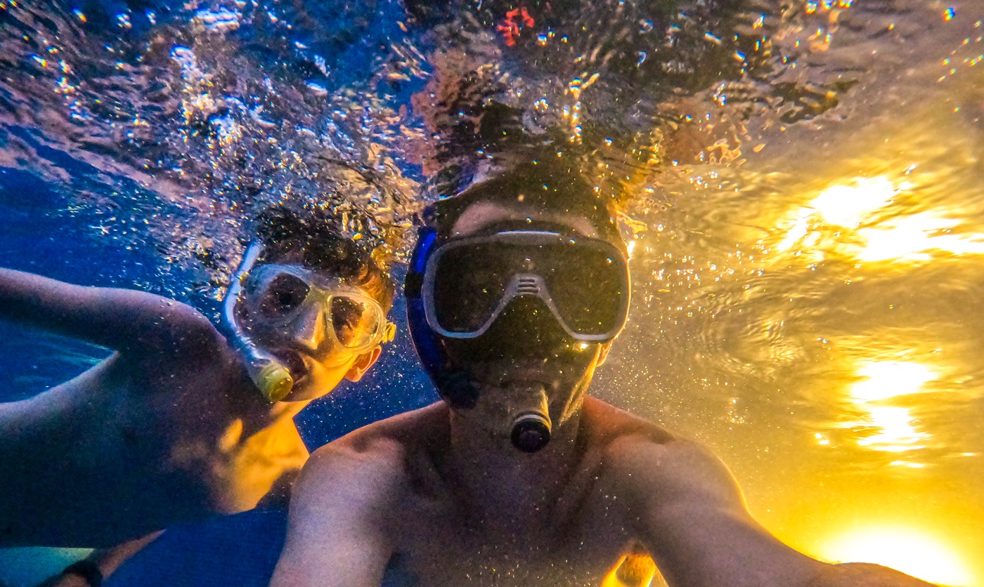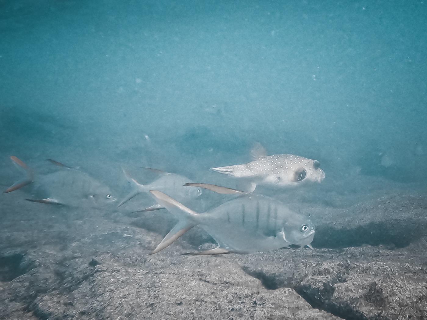 I a més a més, quan per casualitat et poses les ulleres i et submergeixes al voltant de les roques, la vida marina explota. Veure peixos globus el primer dia va ser una sorpresa immensa, acompanyats per les desenes d’altres peixos tropicals.