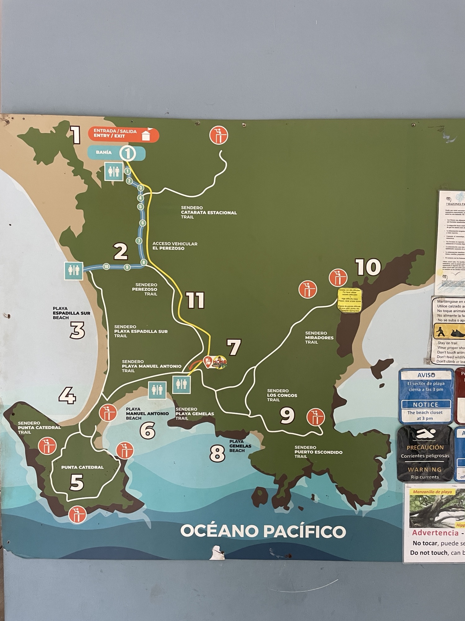I un dels dies vam visitar el Parc Nacional Manuel Antonio que és un dels més populars i visitats del país. De nou, vam matinar per arribar a les 7 i entrar dels primers i poder fer una part de l’excursió amb la mínima gent possible. Això ens va permetre veure bastants animals i que un momo se’ns apropés molt. i ens va sorprendre veure cèrvols o cabirols, que normalment associem a altres paisatges.