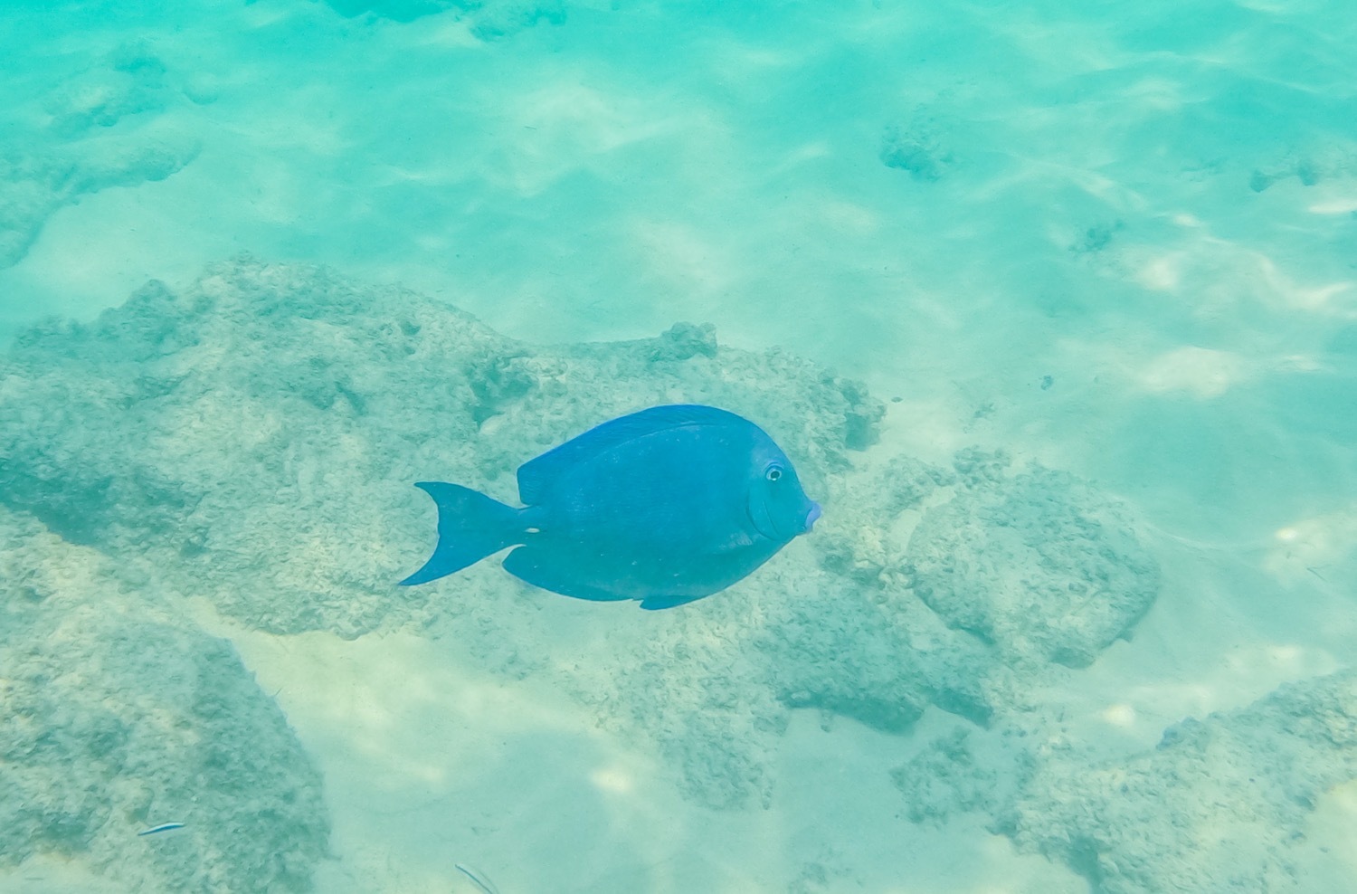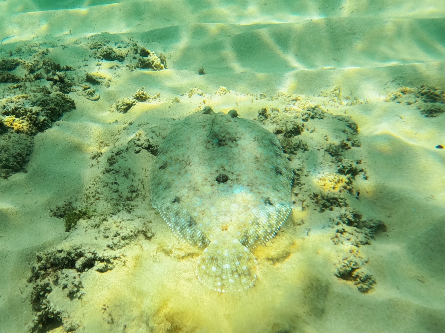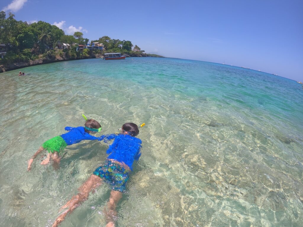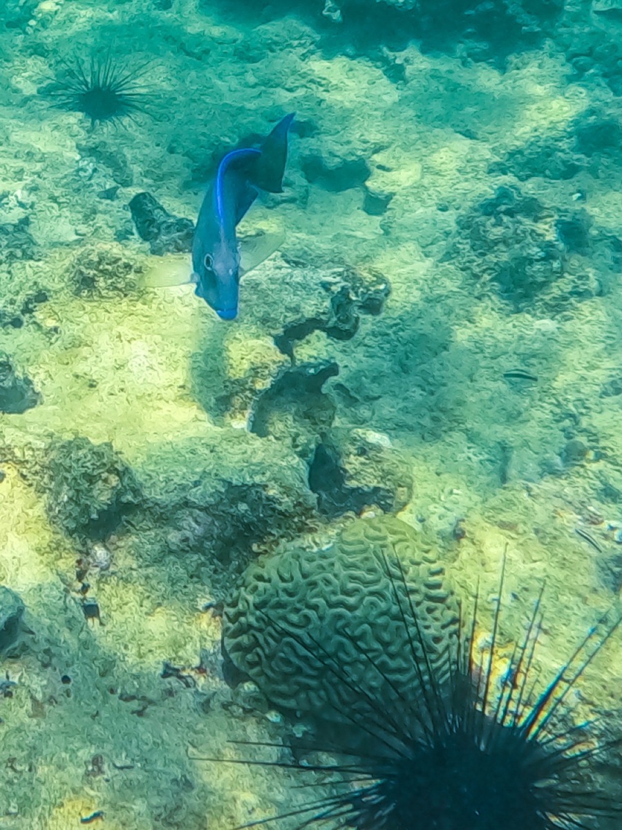 Hem tornat a Sosúa perquè s’hi podia arribar amb autobús i ens evitava la constant negociació que busquen els conductors d’Uber, i amb un mar més calmat i un sol radiant, la platja ens ha sorprès molt positivament. Hem pogut veure molts peixos, entre ells una barracuda bastant gran que va passar tot el matí sota la mateixa barca, un parell de Peacock flounder (Bothus Mancus) que és una espècie de peix manta petit amb colors vius florejats que es camufla sobre l’arena. També hem vist peixos de colors, peixos trompeta, cargols i eriçons de mar i alguns residus plàstics i de metall :(