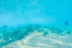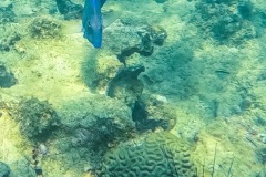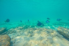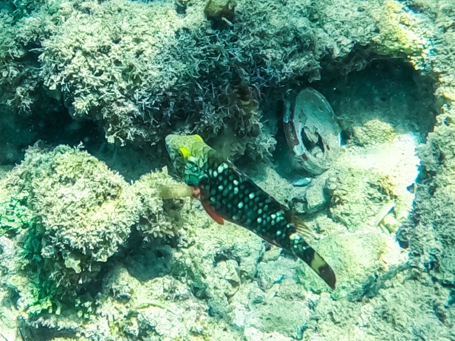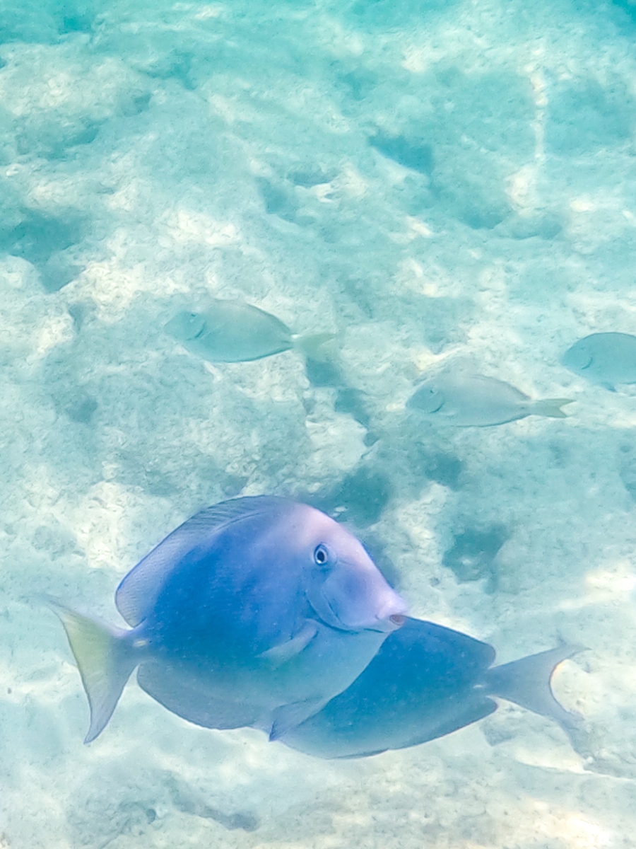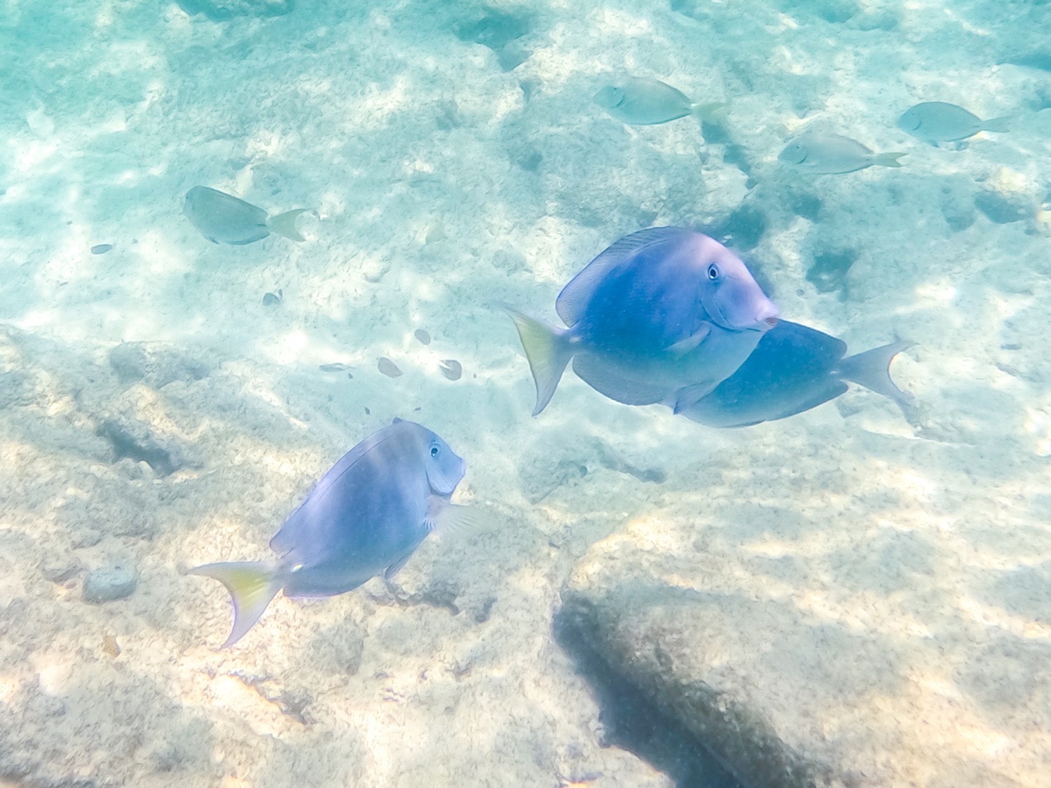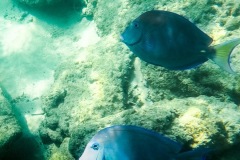 Hem tornat a Sosúa perquè s’hi podia arribar amb autobús i ens evitava la constant negociació que busquen els conductors d’Uber, i amb un mar més calmat i un sol radiant, la platja ens ha sorprès molt positivament. Hem pogut veure molts peixos, entre ells una barracuda bastant gran que va passar tot el matí sota la mateixa barca, un parell de Peacock flounder (Bothus Mancus) que és una espècie de peix manta petit amb colors vius florejats que es camufla sobre l’arena. També hem vist peixos de colors, peixos trompeta, cargols i eriçons de mar i alguns residus plàstics i de metall :(