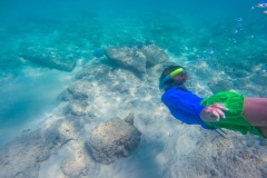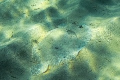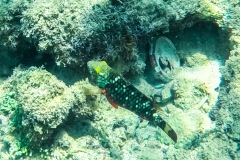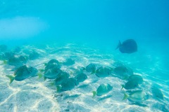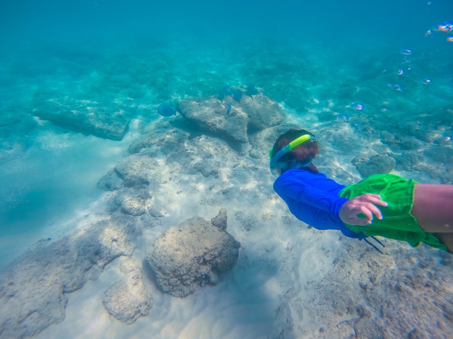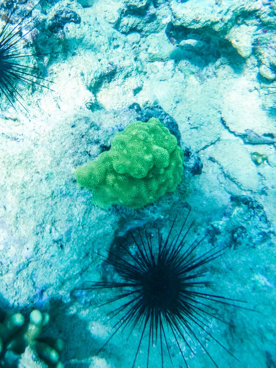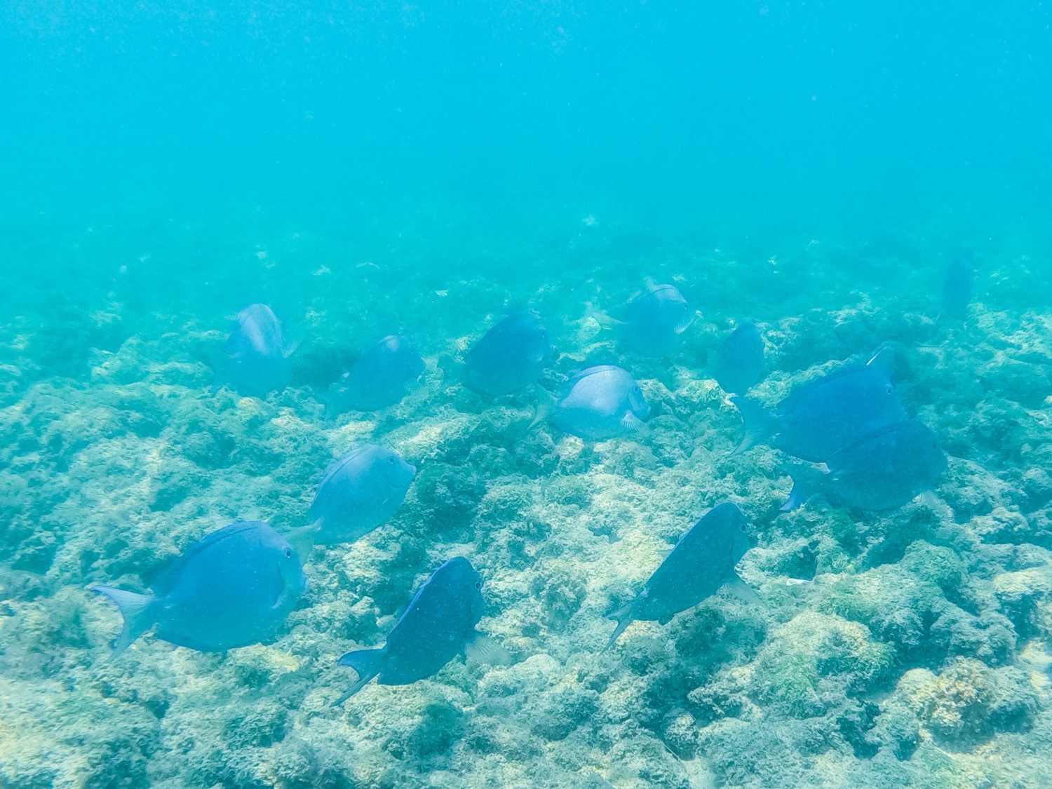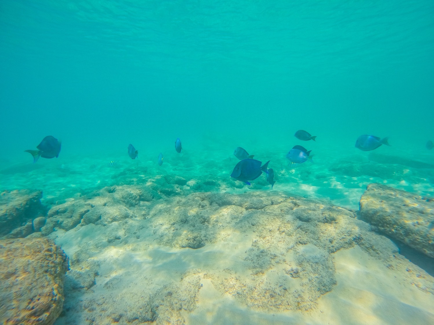 Hem tornat a Sosúa perquè s’hi podia arribar amb autobús i ens evitava la constant negociació que busquen els conductors d’Uber, i amb un mar més calmat i un sol radiant, la platja ens ha sorprès molt positivament. Hem pogut veure molts peixos, entre ells una barracuda bastant gran que va passar tot el matí sota la mateixa barca, un parell de Peacock flounder (Bothus Mancus) que és una espècie de peix manta petit amb colors vius florejats que es camufla sobre l’arena. També hem vist peixos de colors, peixos trompeta, cargols i eriçons de mar i alguns residus plàstics i de metall :(