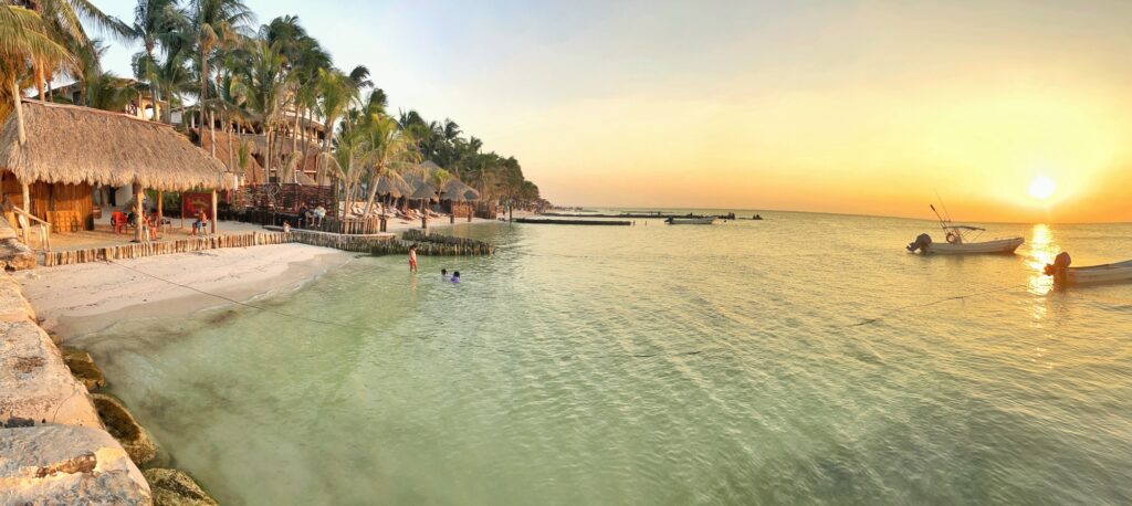 Vam volar a Cancún, on l’aeroport ja deixa entreveure un destí com Las Vegas del carib. Cirque du soleil, resorts, discoteques, tours, restaurants… lloguem un cotxe allà mateix i conduïm fins a Chiquilá per agafar el ferry i arribar a l’illa Holbox.