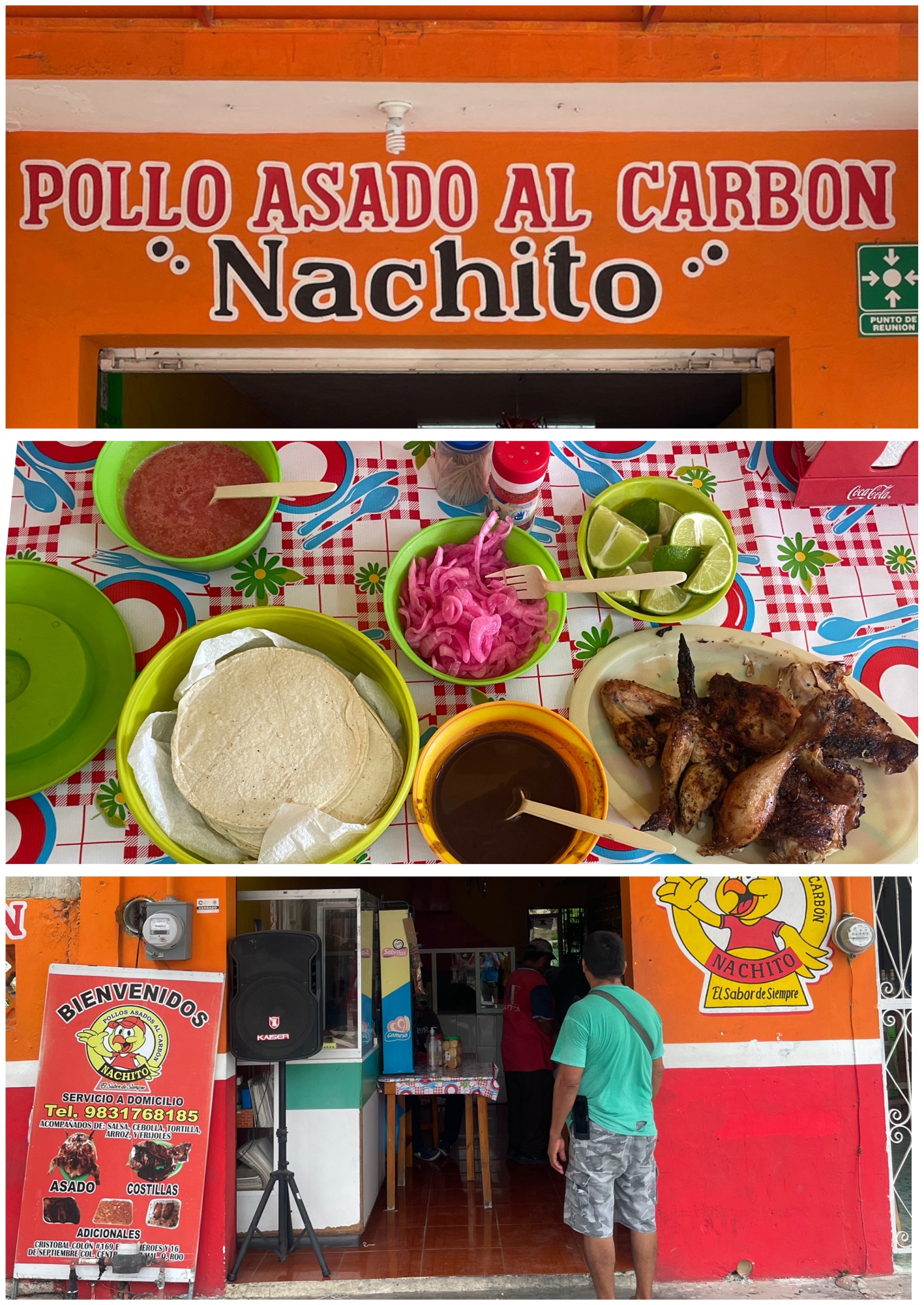 A Chetumal hi vam anar dos dies amb la intenció d’arribar a les ruïnes de Calakmul però les obres del tren Maya en dificulten l’accés i a l’haver-hi inundacions, se’ns va fer impossible, i la visita es va reduir a cine, mercat i Museu de cultura Maya. Ah, i dinar a un local típic de pollastre a la brasa!