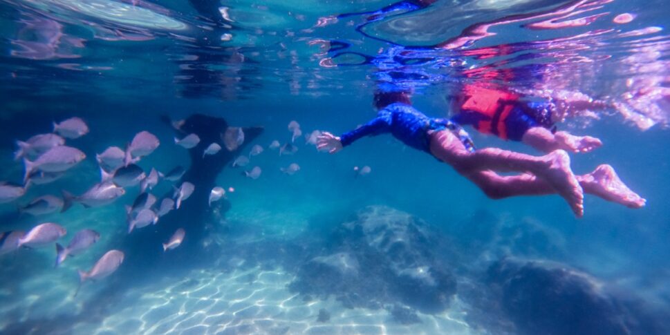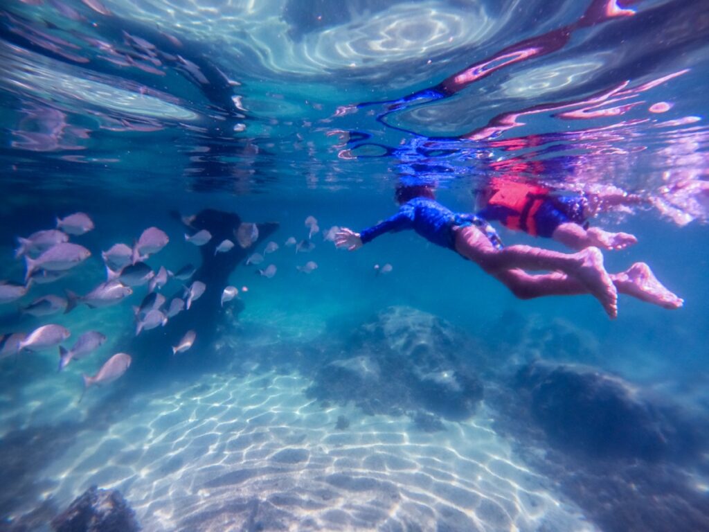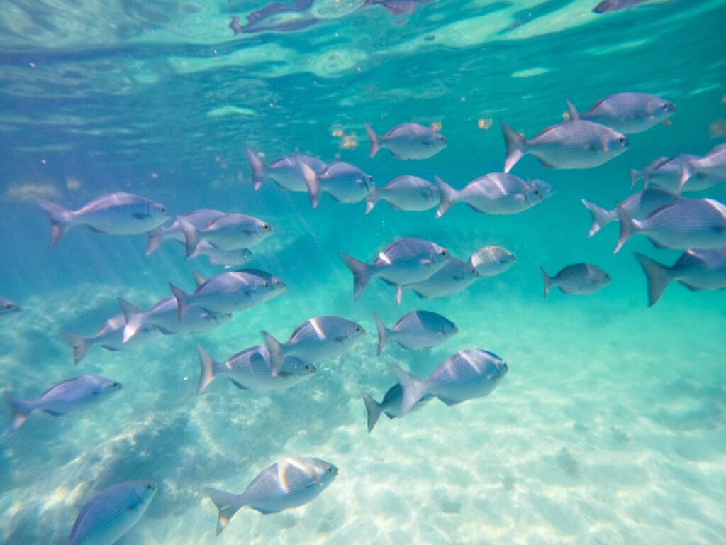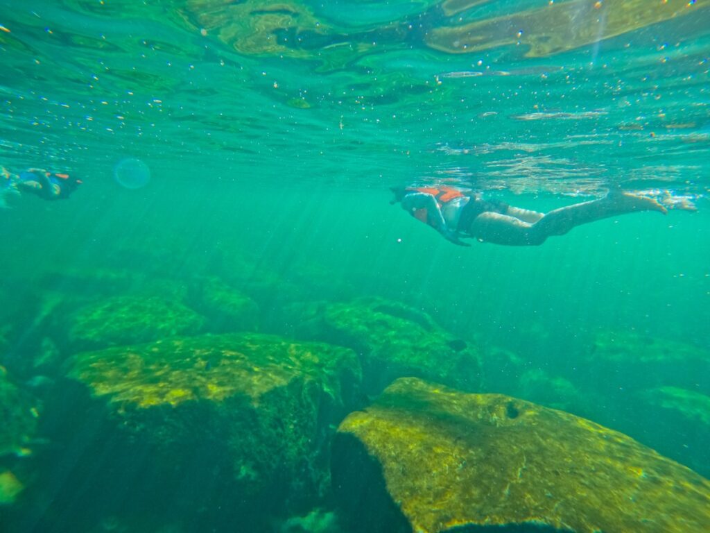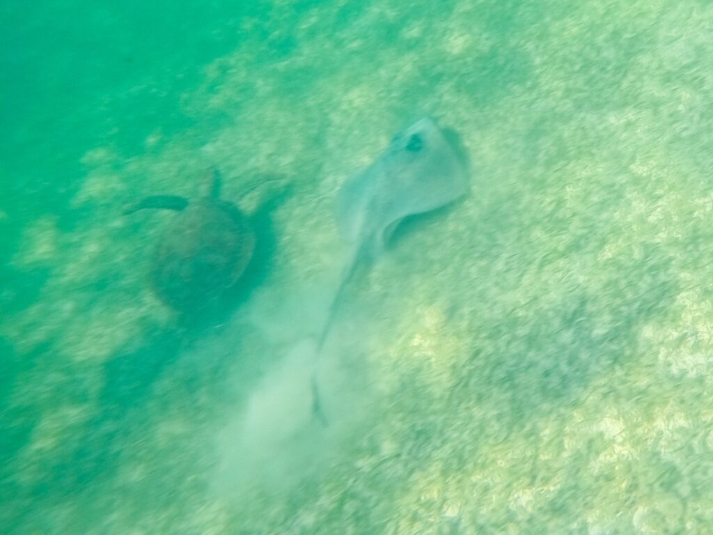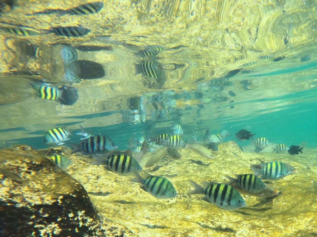 Un dia vam visitar la Laguna Yal Ku, on hi ha un cenote i una llacuna que s’obre al mar, on es pot nedar i fer snorkel en aigua cristal·lina. Vam veure moooolts peixos diferents i nedar entre roques i petites coves.