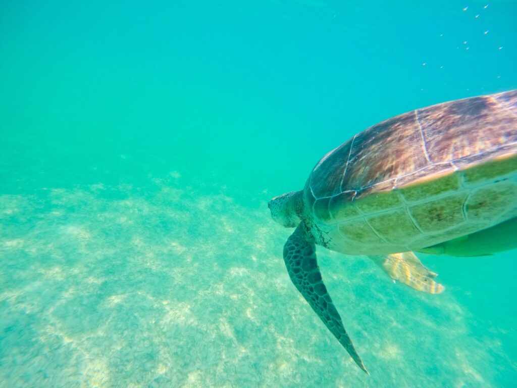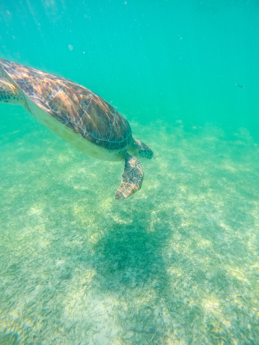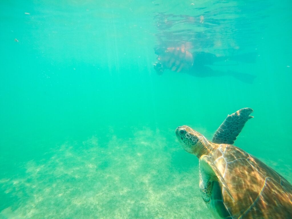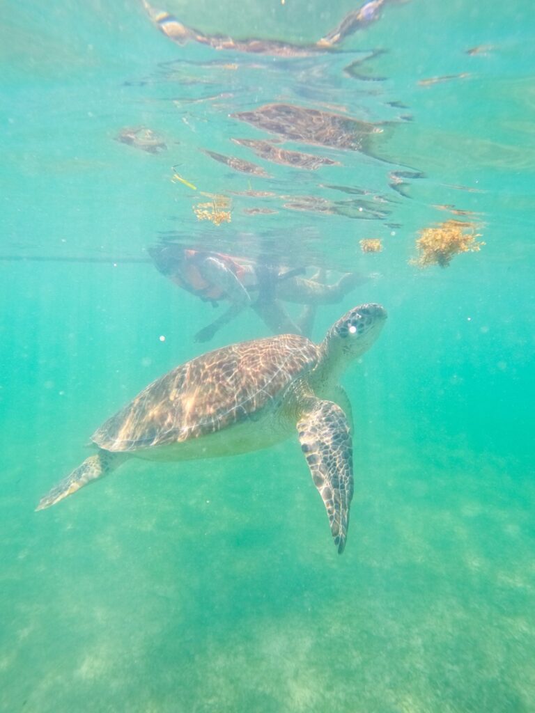La platja és molt bonica, però s’ha privatitzat. Tots els accessos són a través d’hotels o restaurants, o a través del parc natural. I quan t’hi acostes, tothom t’intenta vendre l’activitat de nedar amb tortugues a diferents preus… i nedar pel teu compte prop d’on hi ha les tortugues és quasi impossible, per les persones de vigilància que ho impedeixen.