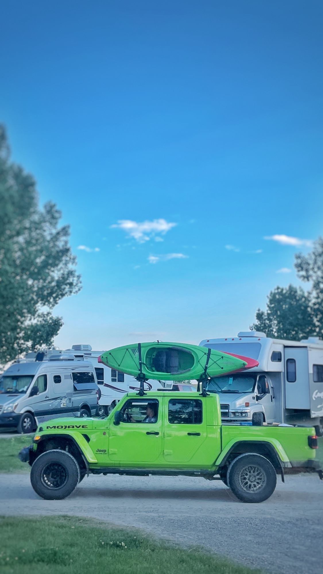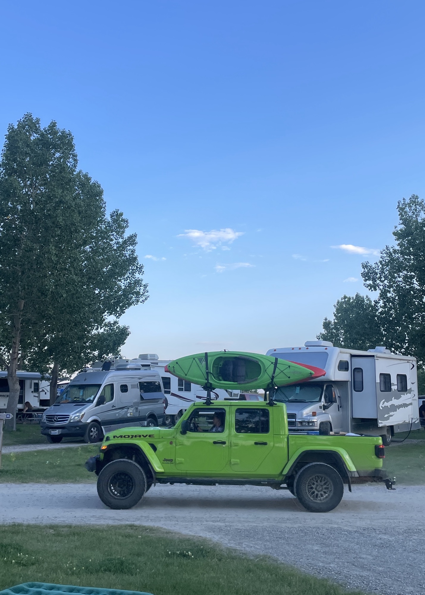 Però just abans d’aparcar, al mig del downtwon de Calgary, al arribar en un semàfor vermell els frens no van frenar. Per sort era pla i el cotxe es va aturar… va tocar buscar un taller de reparacions obert diumenge, deixar el cotxe allà fins l’endemà i tirar d’uber per tornar a l’Stampede i després al camping de Calgary (a 20km) on estem 3 dies (Calaway Park Campground).