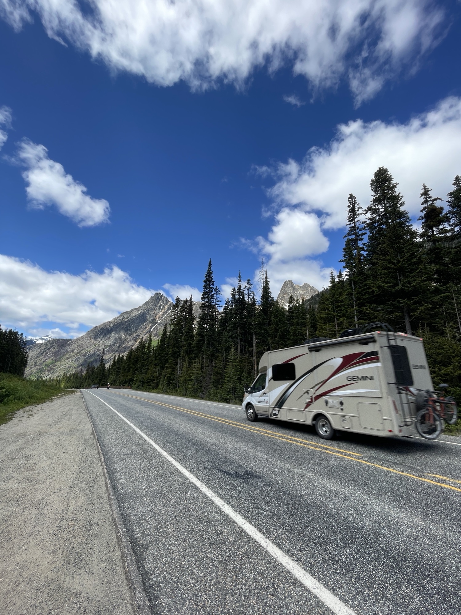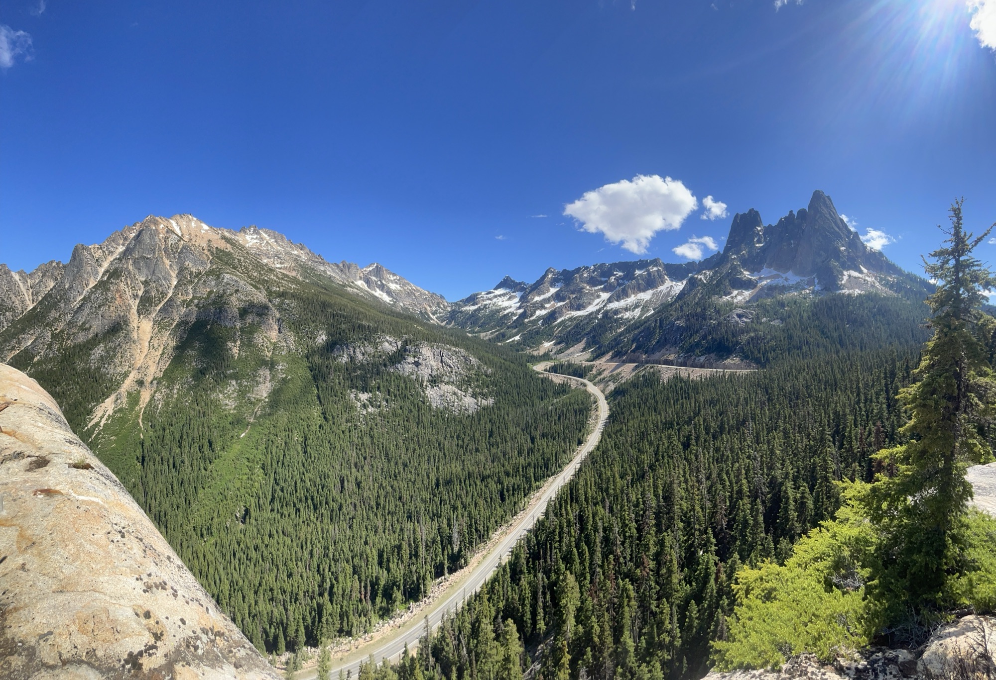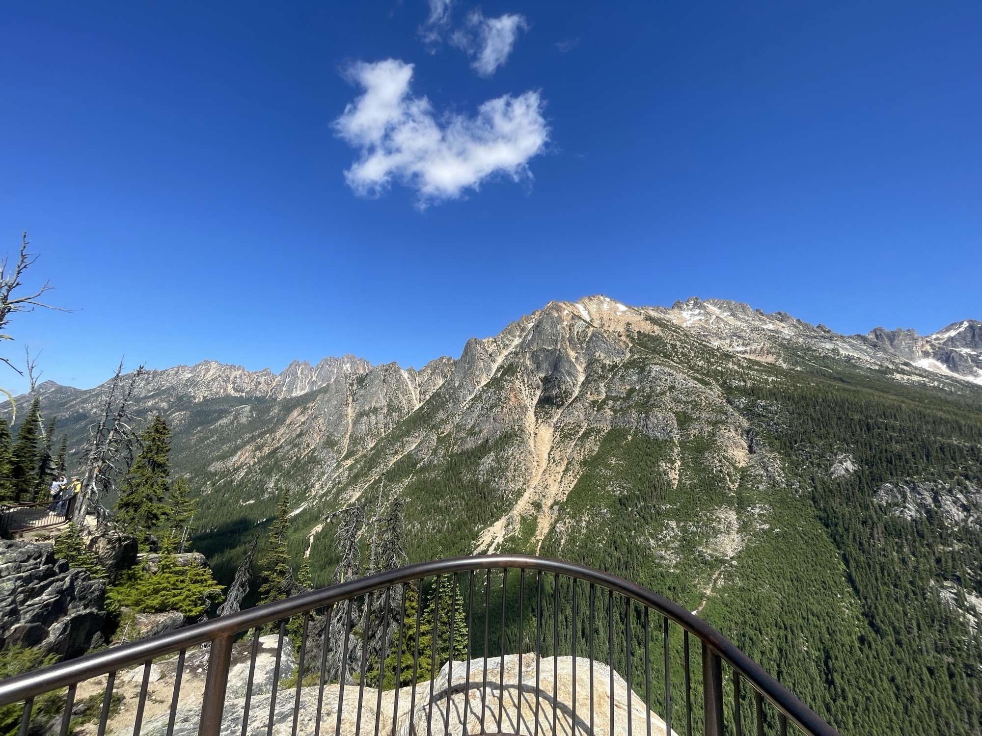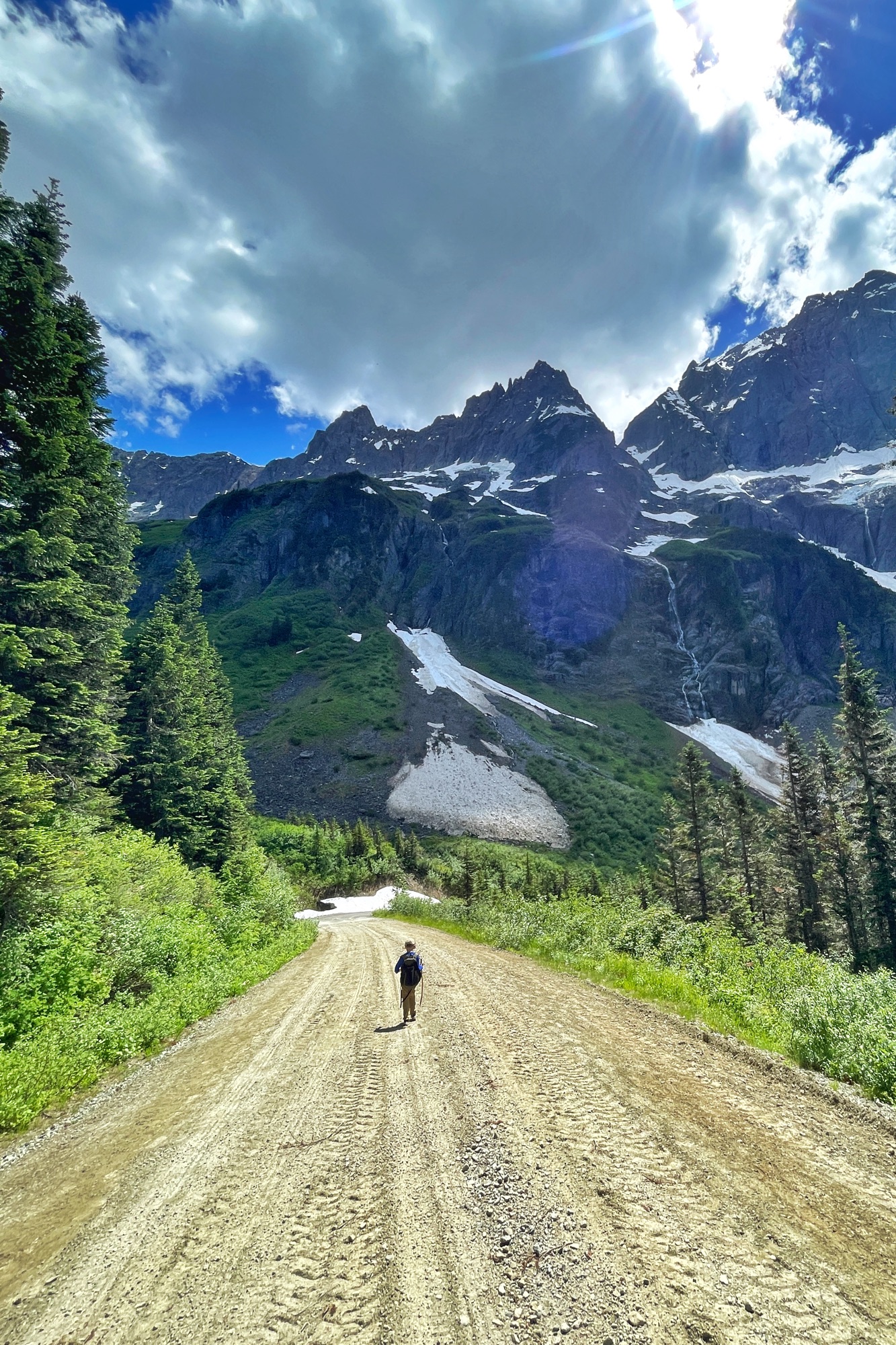 El dia següent volíem pujar fins a North Cascades Pass, però la pista que hi arriba encara estava tancada per manteniment, i havies d’aparcar 6km abans de l’inici del camí. Així que fent aquest tros a peu, ja no ens quedava temps ni energia per fer els 7k que continuaven amunt. Tot i així, les vistes ja valien la pena!