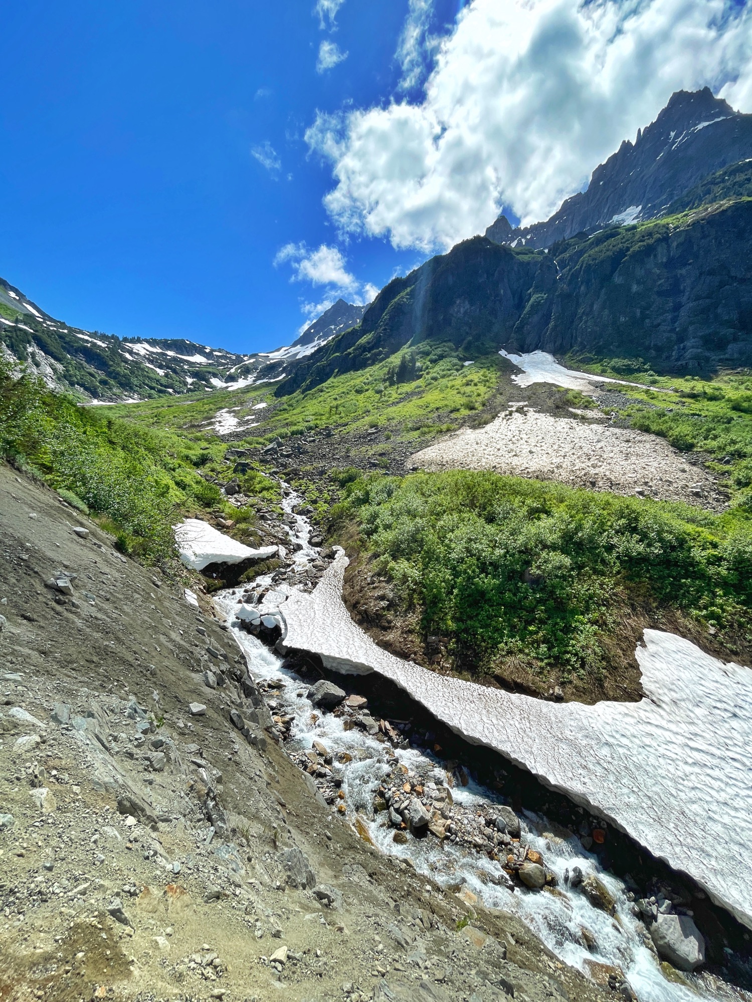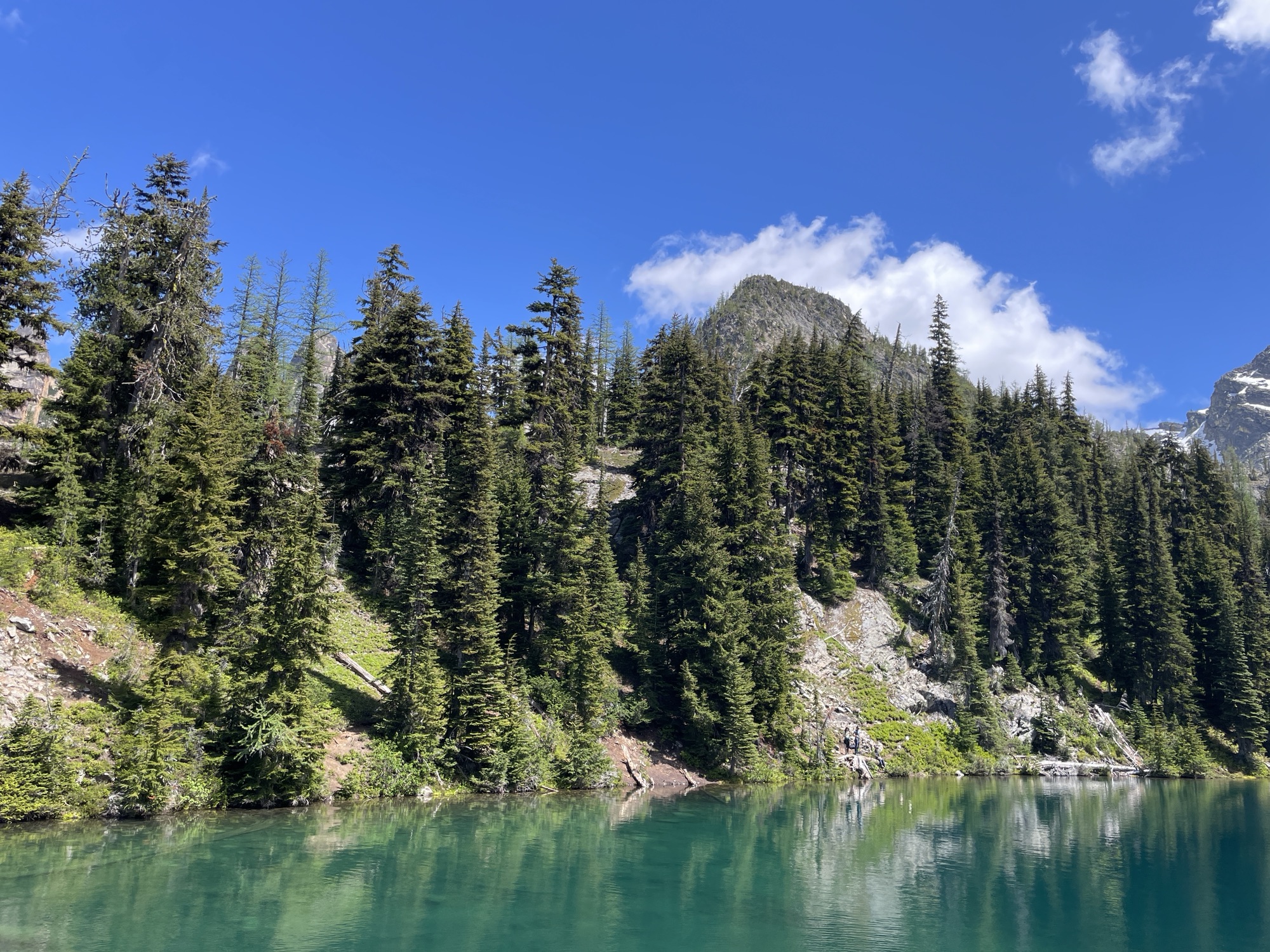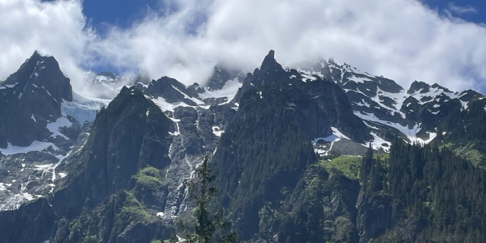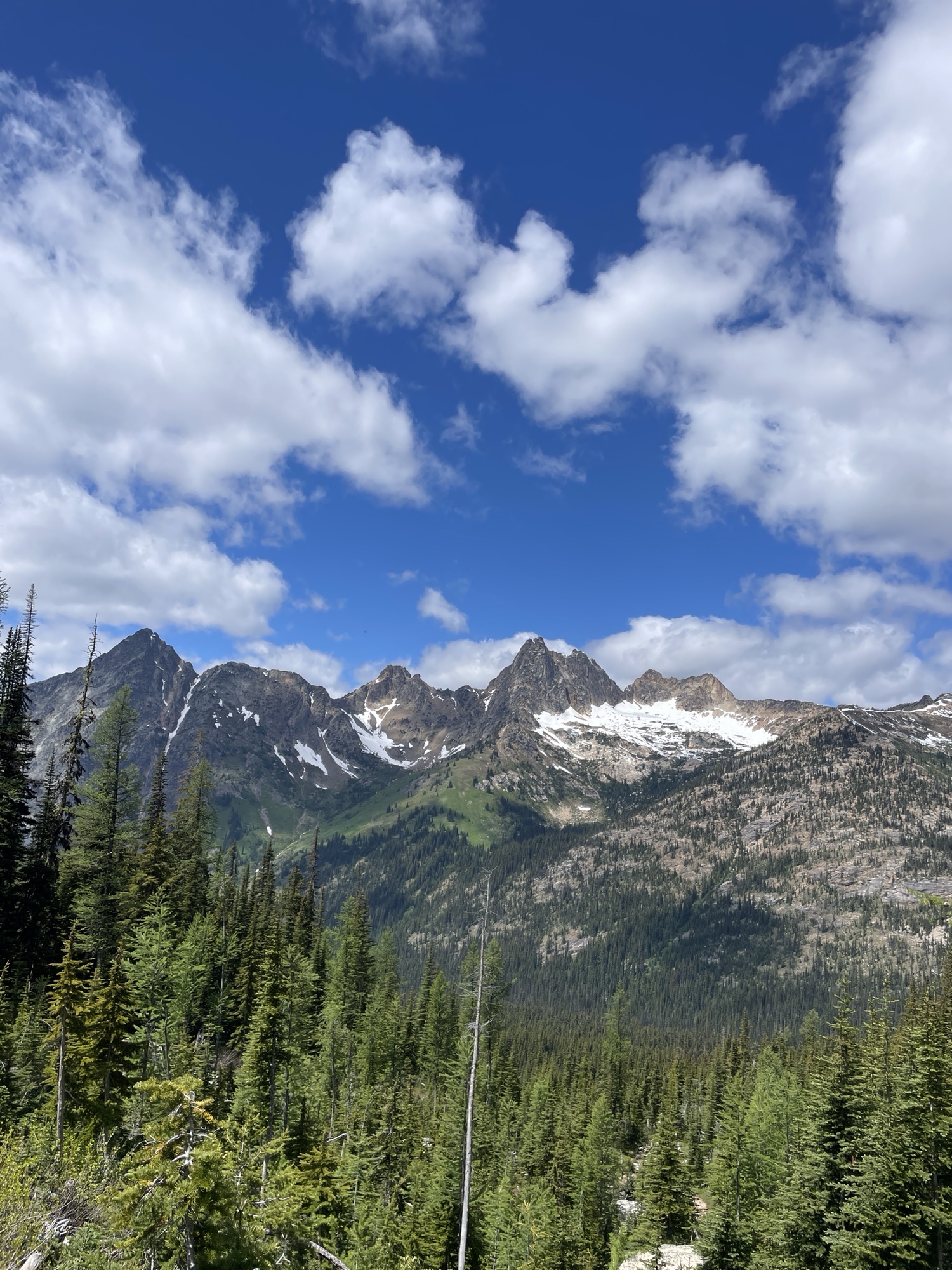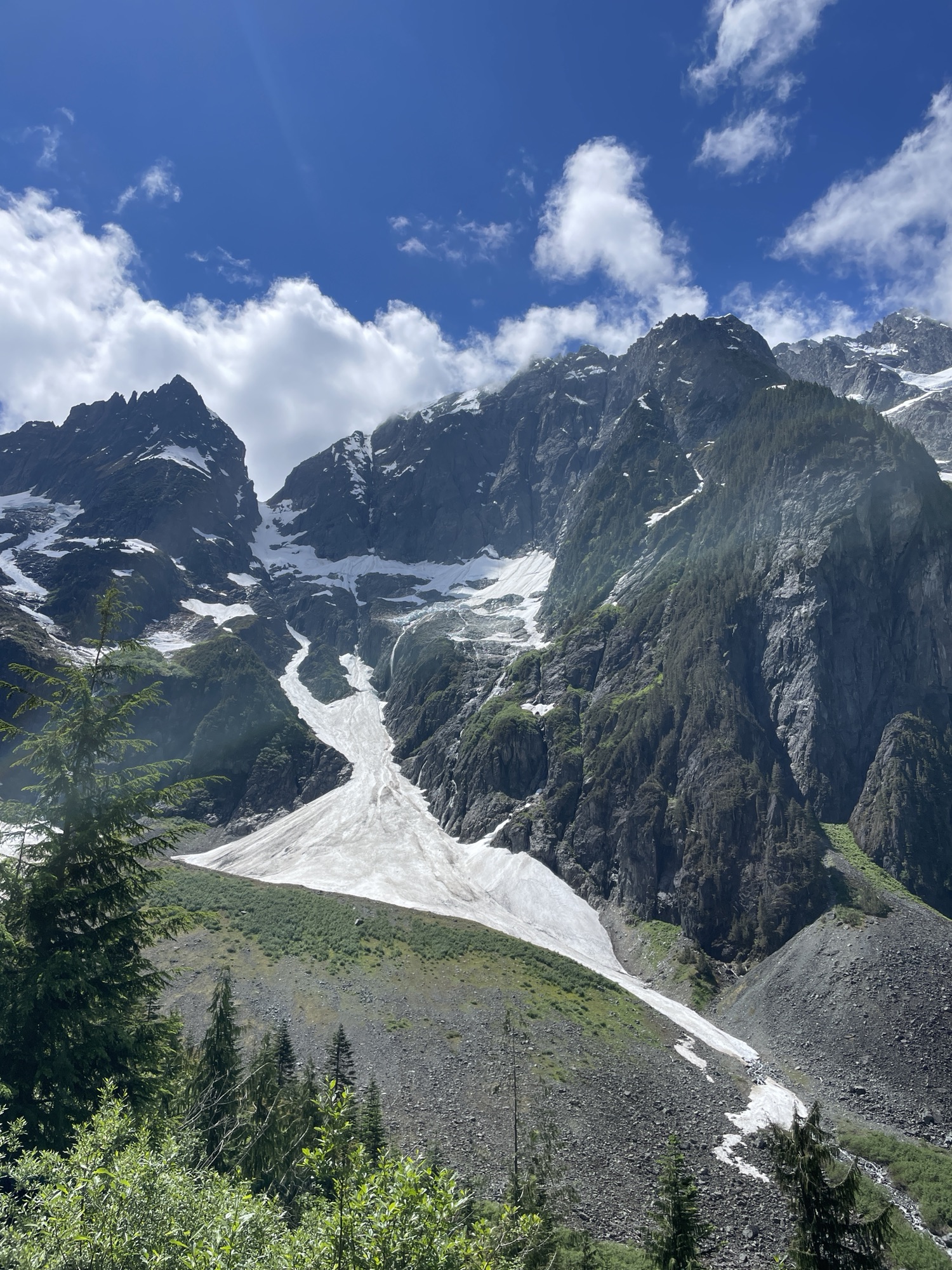 El dia següent volíem pujar fins a North Cascades Pass, però la pista que hi arriba encara estava tancada per manteniment, i havies d’aparcar 6km abans de l’inici del camí. Així que fent aquest tros a peu, ja no ens quedava temps ni energia per fer els 7k que continuaven amunt. Tot i així, les vistes ja valien la pena!