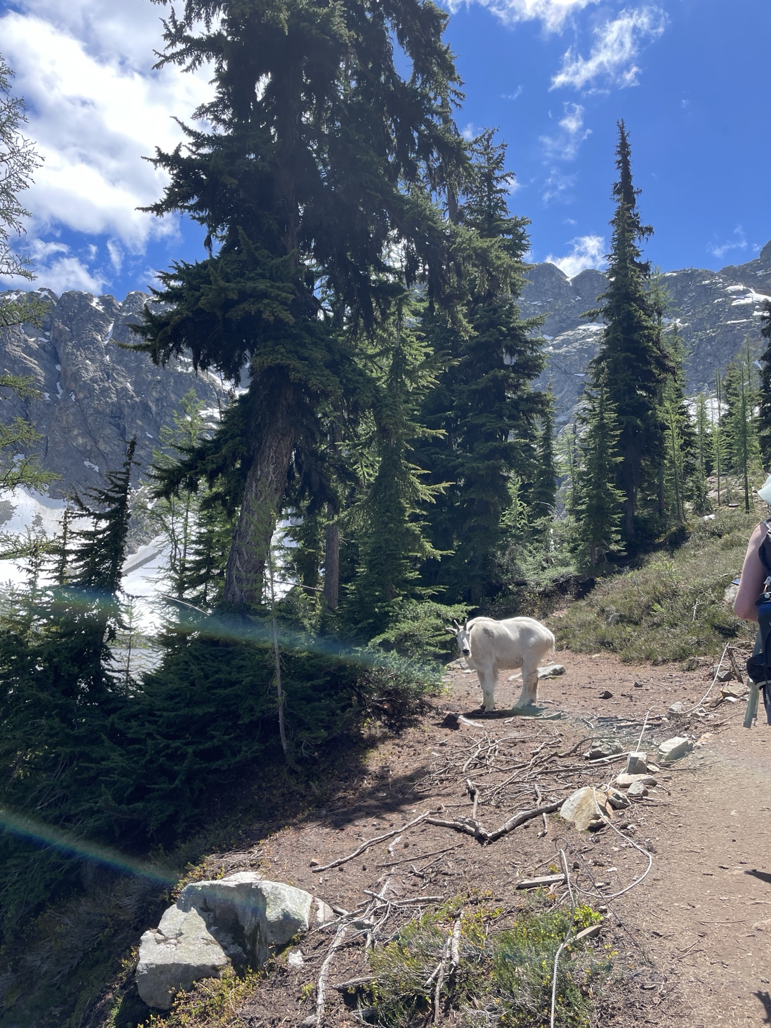 Un dels dies va pujar fins al Blue Lake, on la neu just començava a fondre’s, i vam trobar una família de cabres salvatges i alguns esquirols. De baixada, vam arribar fins al Washington Pass Overlook, des d’on es té una vista espectacular de la vall, les muntanyes i la Highway 20 que travessa el parc.