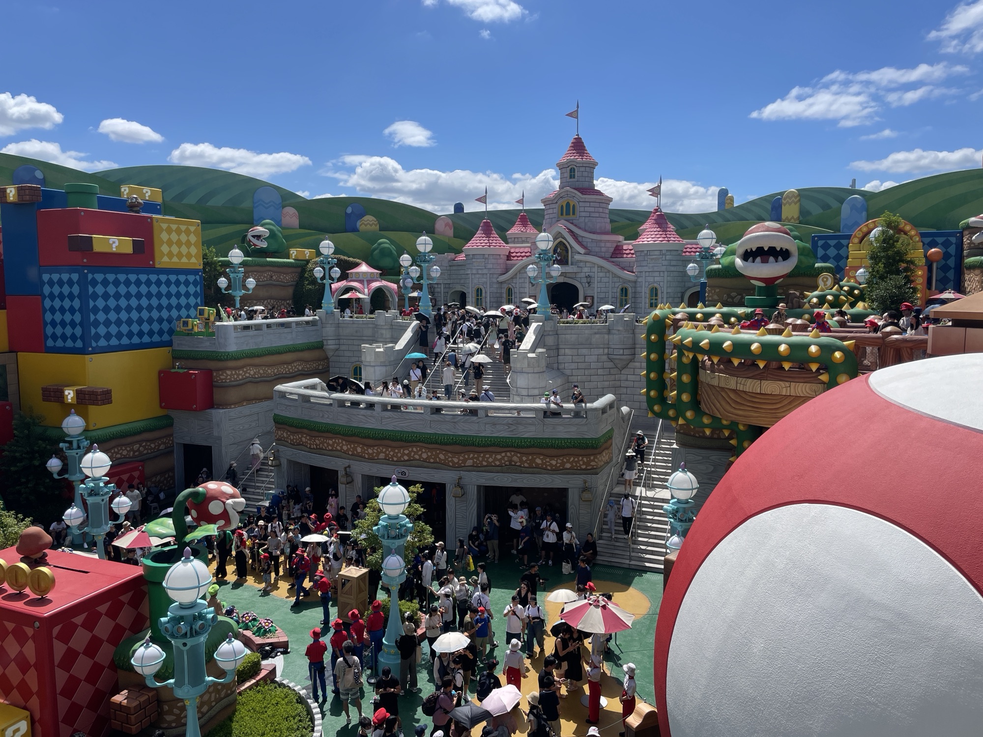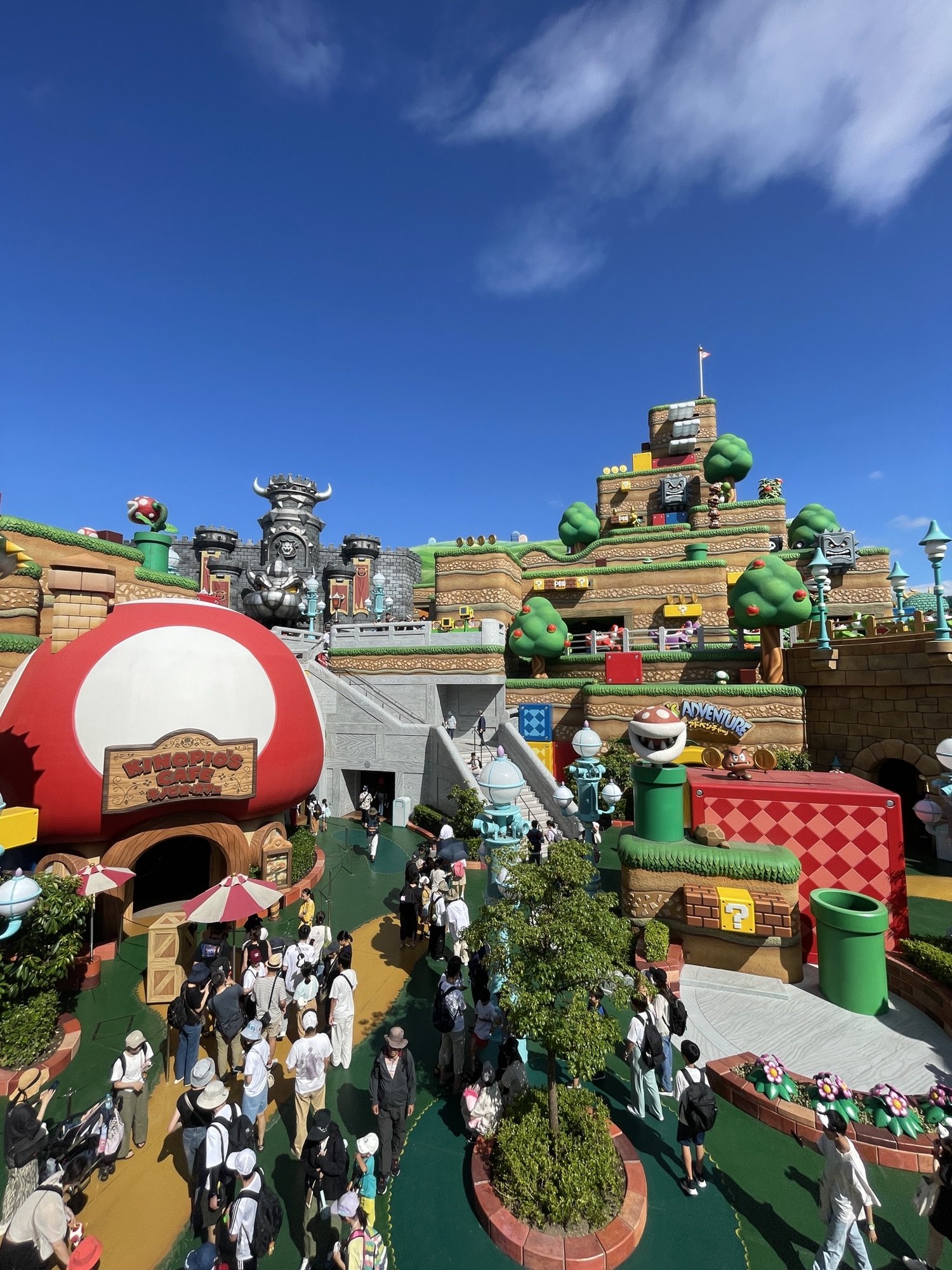Osaka és més tranquil i còmode que Tòquio, menys línies de tren diferents i tot més proper. Les dificultats per comprar entrades per al parc Universal Studios i assegurar-nos poder entrar a l’àrea de Nintendo World (l’accés va restringit per cupos i entrades especials), ens ha requerit moltes hores de llegir blogs i instruccions, i llevant-nos molt dora aconseguim ser dels primers d’entrar i garantir l’accés a l’àrea de Nintendo. Després dels nervis passats durant la setmana anterior, sense saber si podríem acabar visitant Osaka o no, estar dins del parc i haver pogut entrar a l’àrea de Nintendo sembla un gran triomf :)