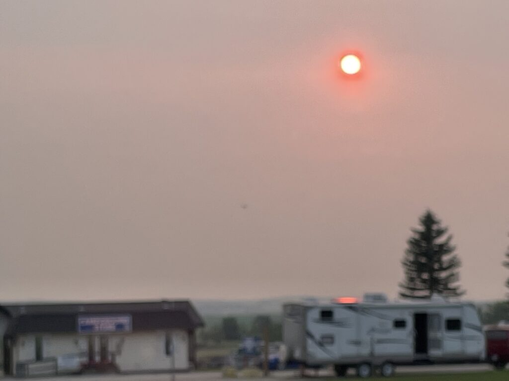 Entre Banff i Jasper, havíem planificat dormir prop de Calgary per anar al supermercat, etc. Vam dormir altra vegada al camping de Calaway Park i a les 8 del matí, mirant la ruta veiem que la carretera està tallada… i al mirar les notícies ens adonem que és degut a l’incendi i l’evacuació que fa unes hores ha començat per treure tota la gent del parc, dels càmpings i fins i tot del poble de Jasper. Si no haguéssim afegit aquesta nit a Calgary, estaríem ja al càmping de Whistlers i formaríem part de la caravana de cotxes atrapats a la carretera sortint de Jasper National Park a mitja nit.