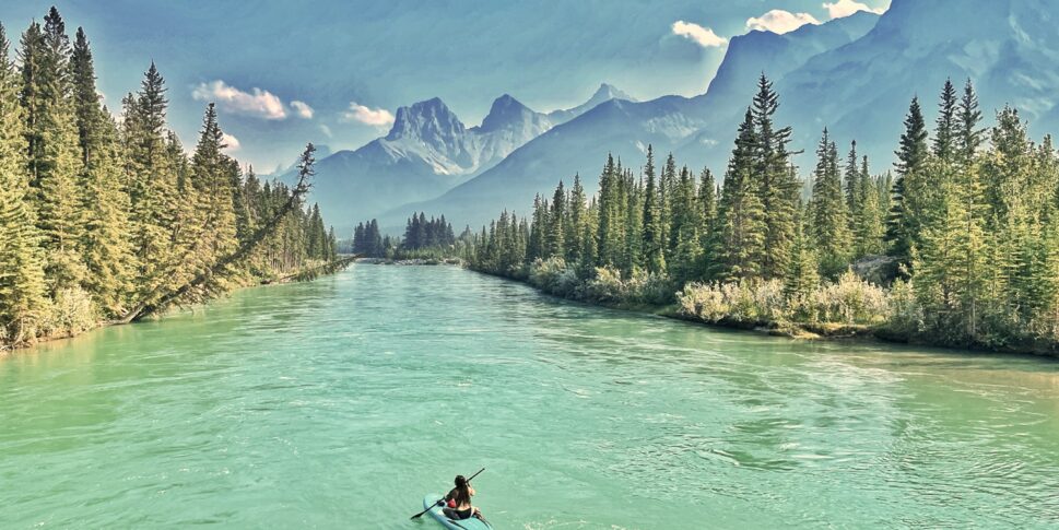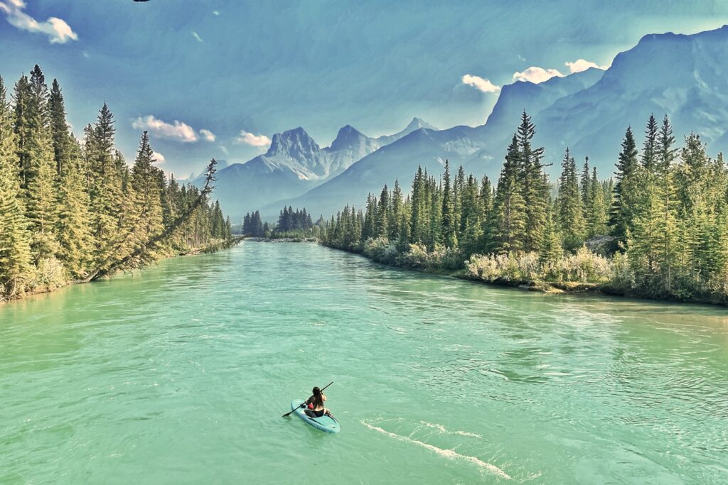 Decidim passar uns dies a Canmore, una ciutat de muntanya abans de Banff, porta d’entrada a Kananaskis Country, on hi ha pistes d’esquí, punts d’escalada i altres activitats de muntanya. Fem la ruta dels llacs, remem amb la típica canoa canadenca i ens banyem en llacs glaciars.